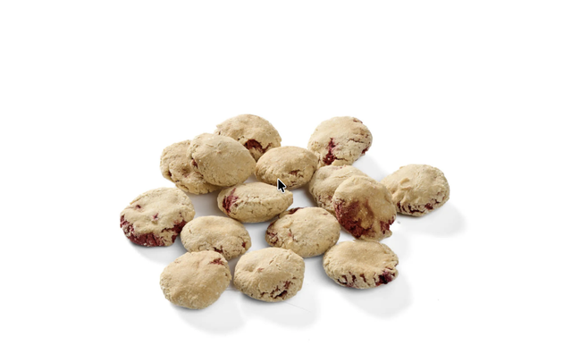 Composition: Flocons de pommes de terre, viande de gibier fraîche (20%), farine de noix de coco (15,5%), farine de pommes de terre, abricots secs (4%) betterave rouge séchée (3%), betterave rouge fraîche (3%), flocons de noix de coco (2,8%), arôme vanille, anis